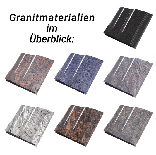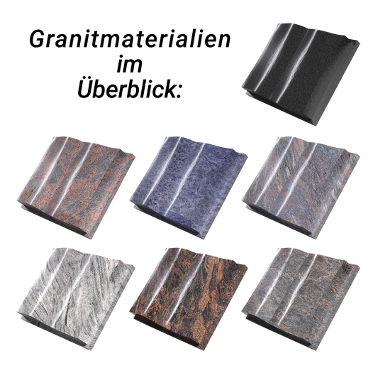 Unsere Grabbücher werden aus Granit gefertigt und sind besonders beliebt aufgrund ihrer Haltbarkeit und Widerstandsfähigkeit. Unsere Granite sind in verschiedenen Farben und Mustern erhältlich und verleiht den Grabbüchern eine edle Optik. Grabbücher aus Granit sind ideal für detaillierte Gravuren und Verzierungen, die das Andenken an Ihre Geliebten würdevoll bewahren.