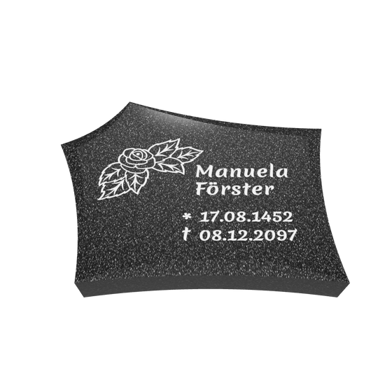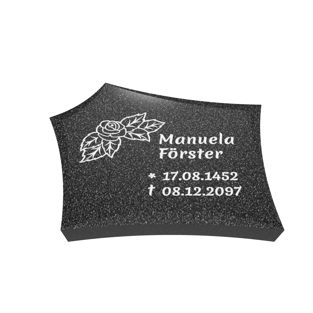 Eine Liegeplatte zur Erinnerung an ein einzigartiges Leben. Ein Lebensweg ist selten schnurgerade, oft geprägt von Höhen und Tiefen, Wendungen und unerwarteten Abzweigungen. Unsere Grabplatte Acaunum fängt diese Individualität in seiner einzigartigen Form ein. Der unregelmäßig gestaltete, polygonale Granitstein symbolisiert ein Leben, das seinen ganz eigenen Weg gegangen ist – nicht immer planmäßig, aber stets kraftvoll und voller Charakter.