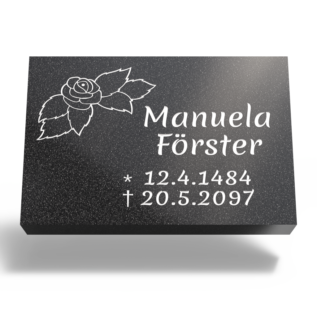 Klassische rechteckige Liegeplatte 60x40x6 aus Granit inkl. Gravur, gut geeignet für Urnen- und Rasengräber. (Hinweis: ca. 40 kg Speditionsware).
