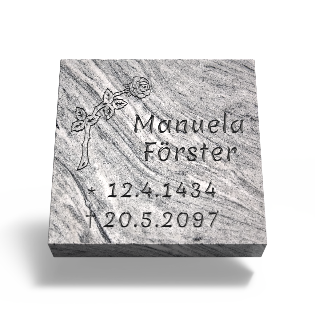 Die vertiefte Gravur und der eingearbeitete Lack sorgen dafür, dass Ihre gewählte Grabsteinbeschriftung nicht nur beim Verlegen der Grabplatte gut lesbar ist, sondern auch über viele Jahre schön bleibt.